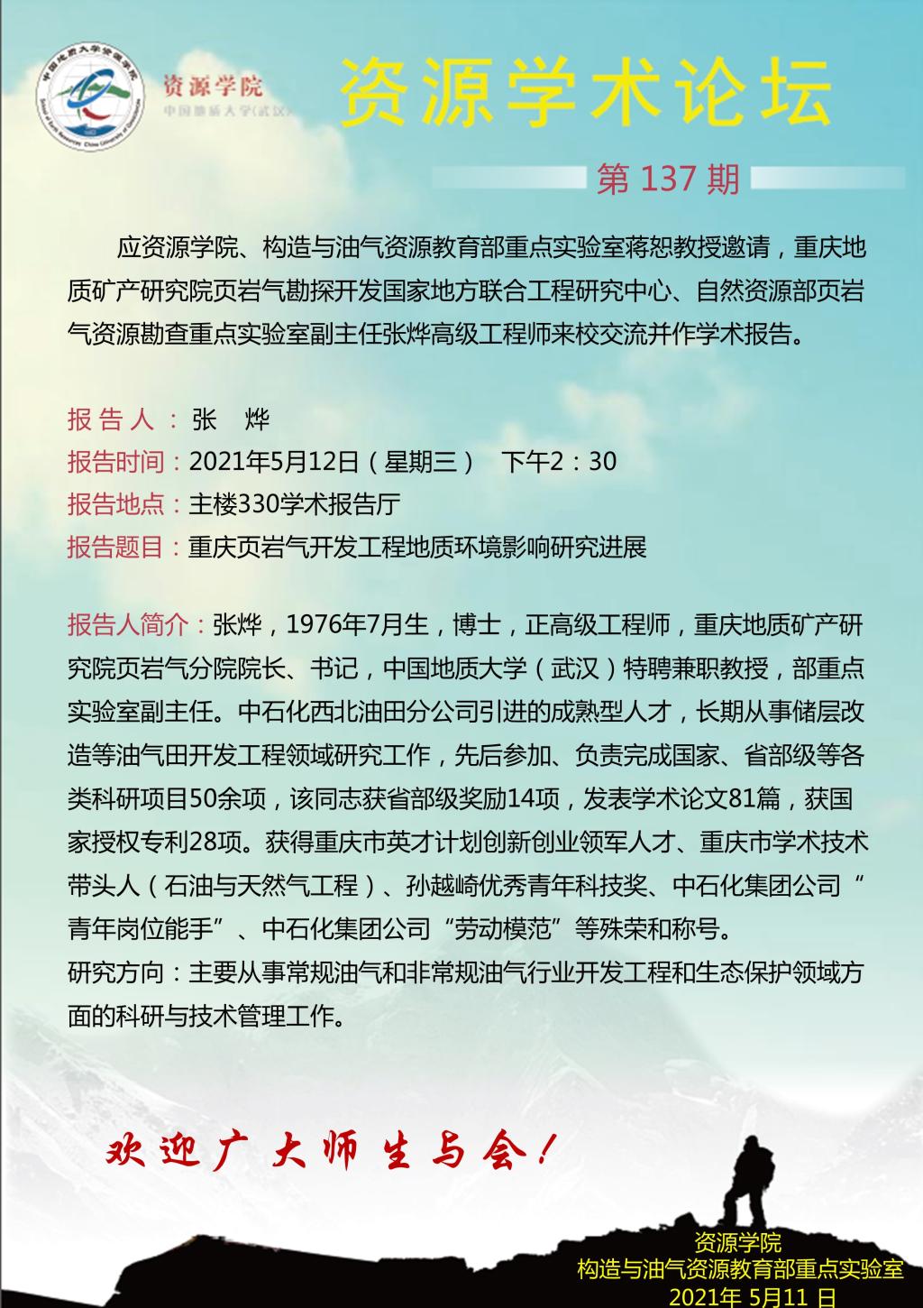 【05月12日】第137期资源学术论坛:张烨学术报告