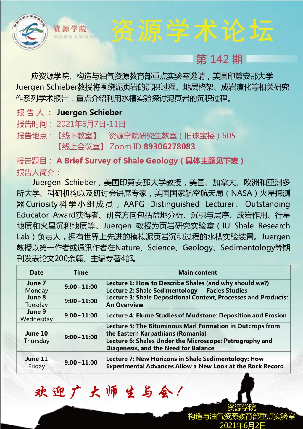 【06月07日-06月11日】第142期资源学术论坛:Juergen Schieber学术报告