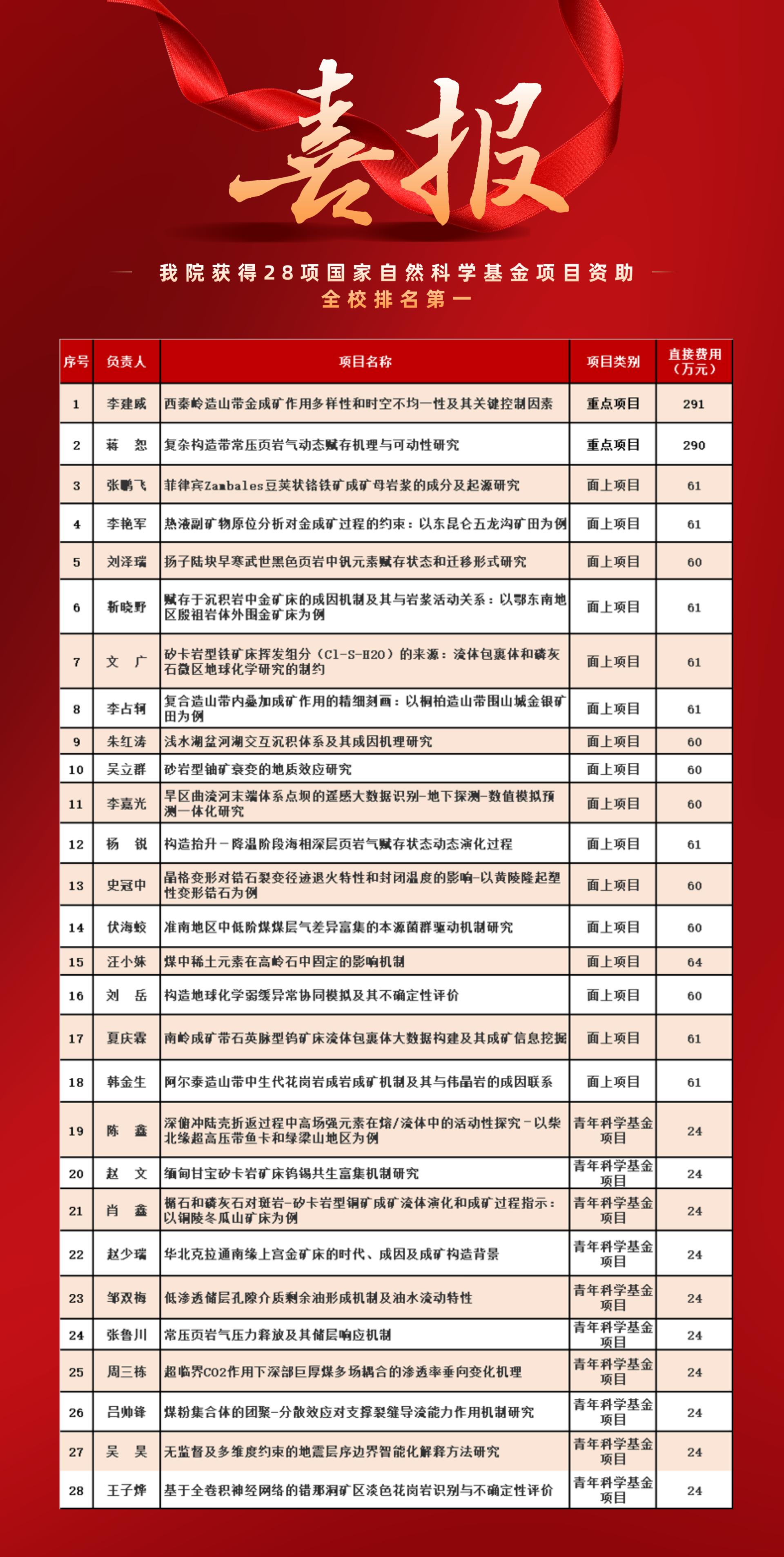 8月18日,国家自然科学基金委员会公布了2021年集中接收期项目评审结果,304.cam永利集团共有28个项目获得立项资助,再次刷新资助纪录。其中,重点项目2项、面上项目16项、青年科学基金项目10项,直接资助费用共计1793万元。