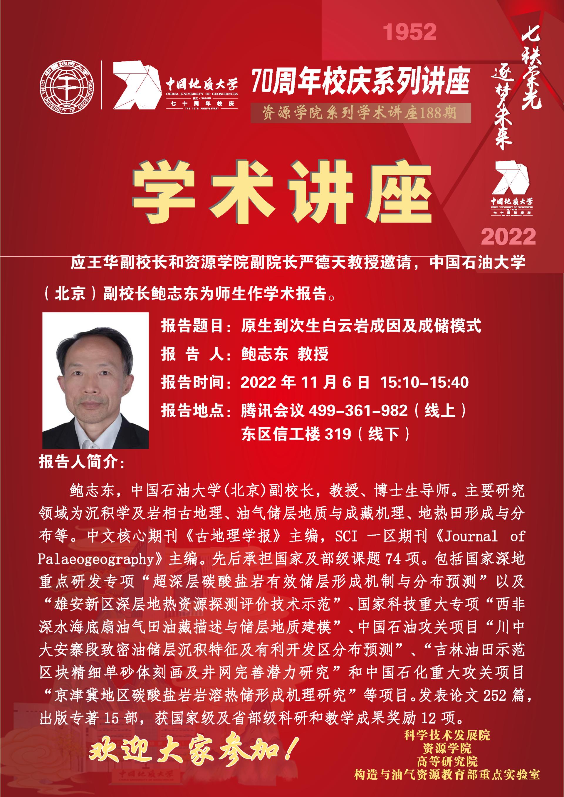 【11月6日】第188期资源学术论坛:鲍志东学术报告