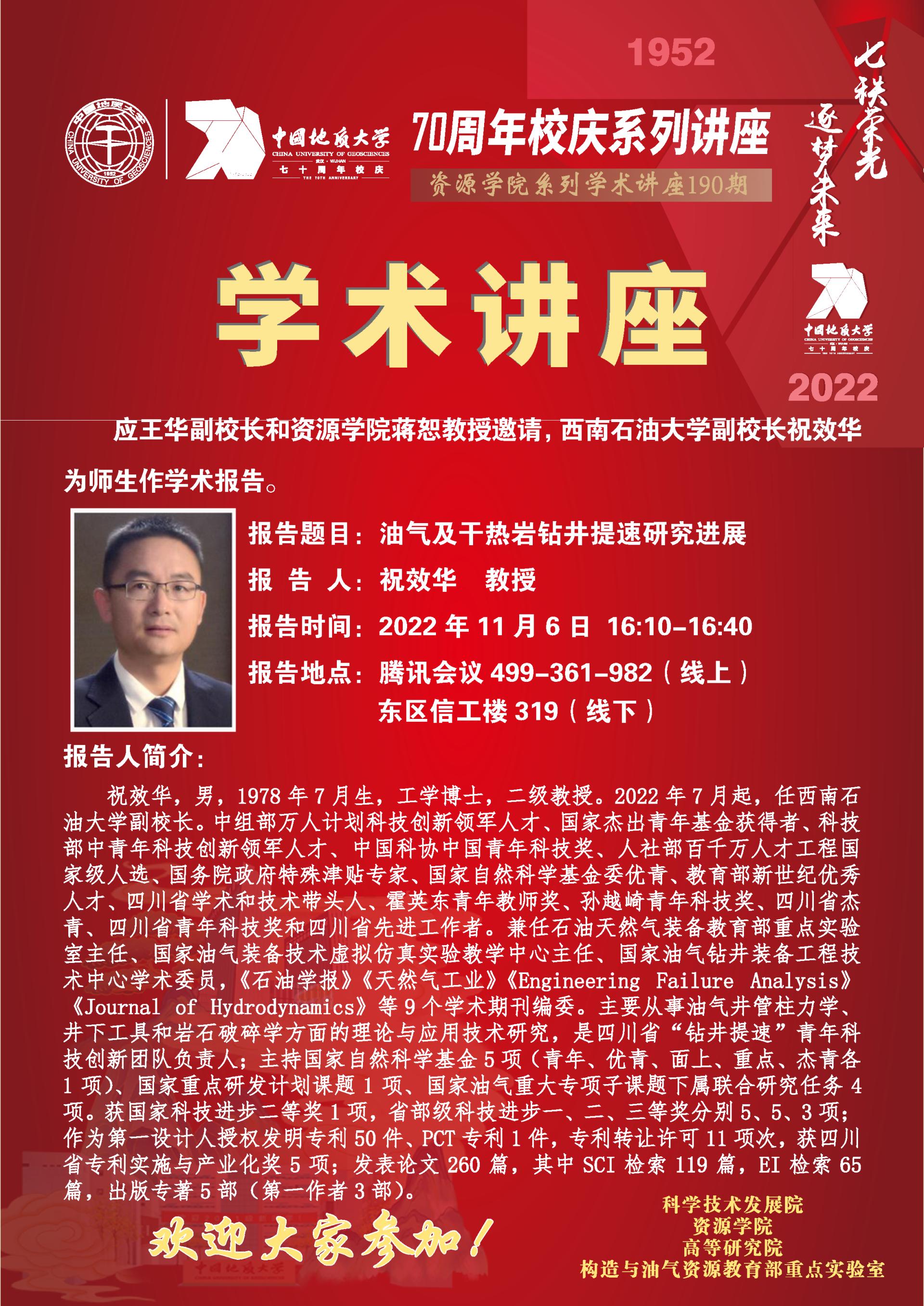 【11月6日】第190期资源学术论坛:祝效华学术报告