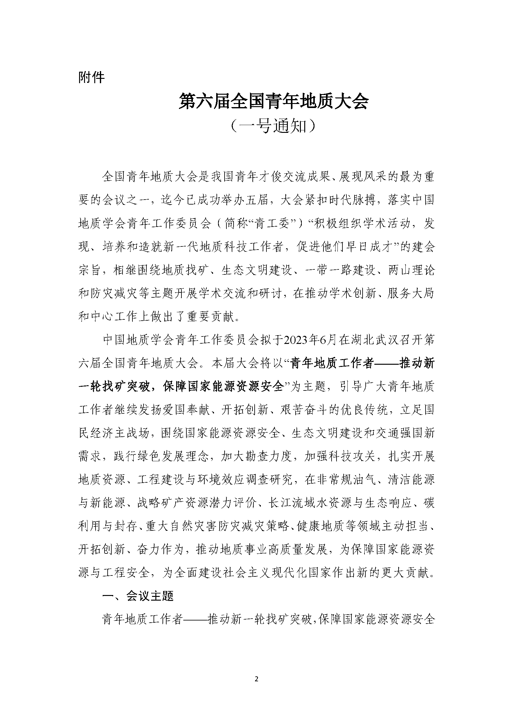 关于举办中国地质学会第六届全国青年地质大会的通知(一号通知)