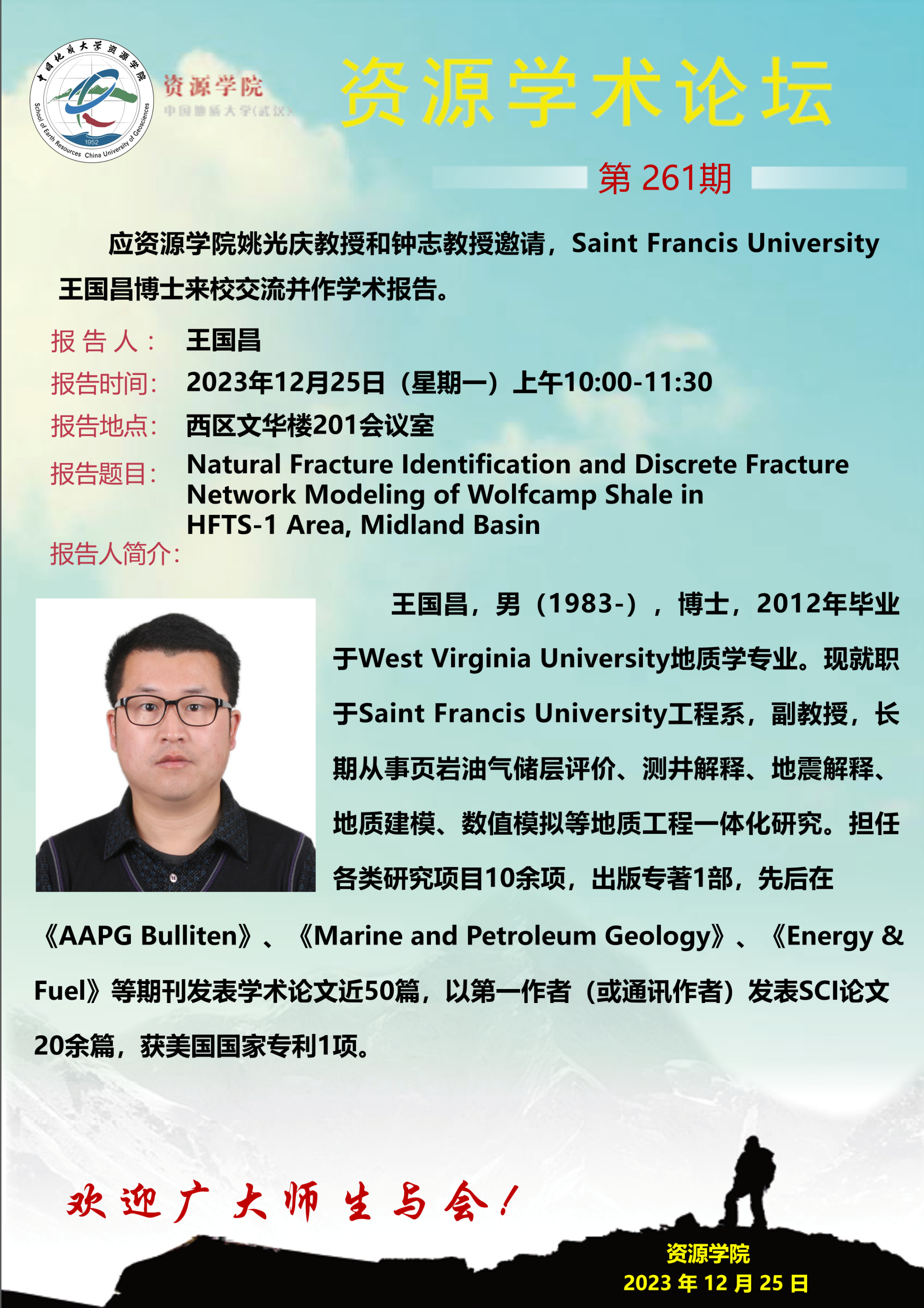 【12月25日】第261期资源学术论坛:王国昌学术报告
