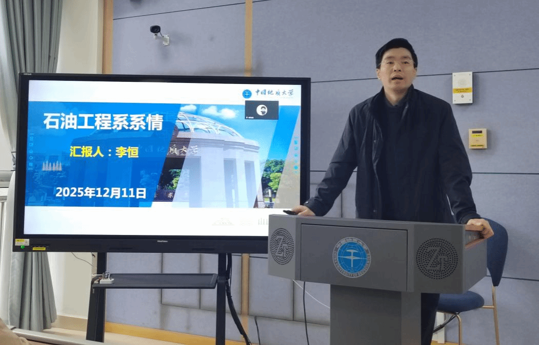 李恒介绍石油工程系基本情况。他从石油工程学科发展历程、团队队伍与平台建设、科学研究与社会服务、人才培养质量与成效等方面系统地梳理了石油工程系的系情,强调了石油工程专业的办学特色和学科优势。