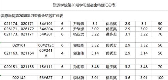 第20期学习型宿舍结题情况公示如下: