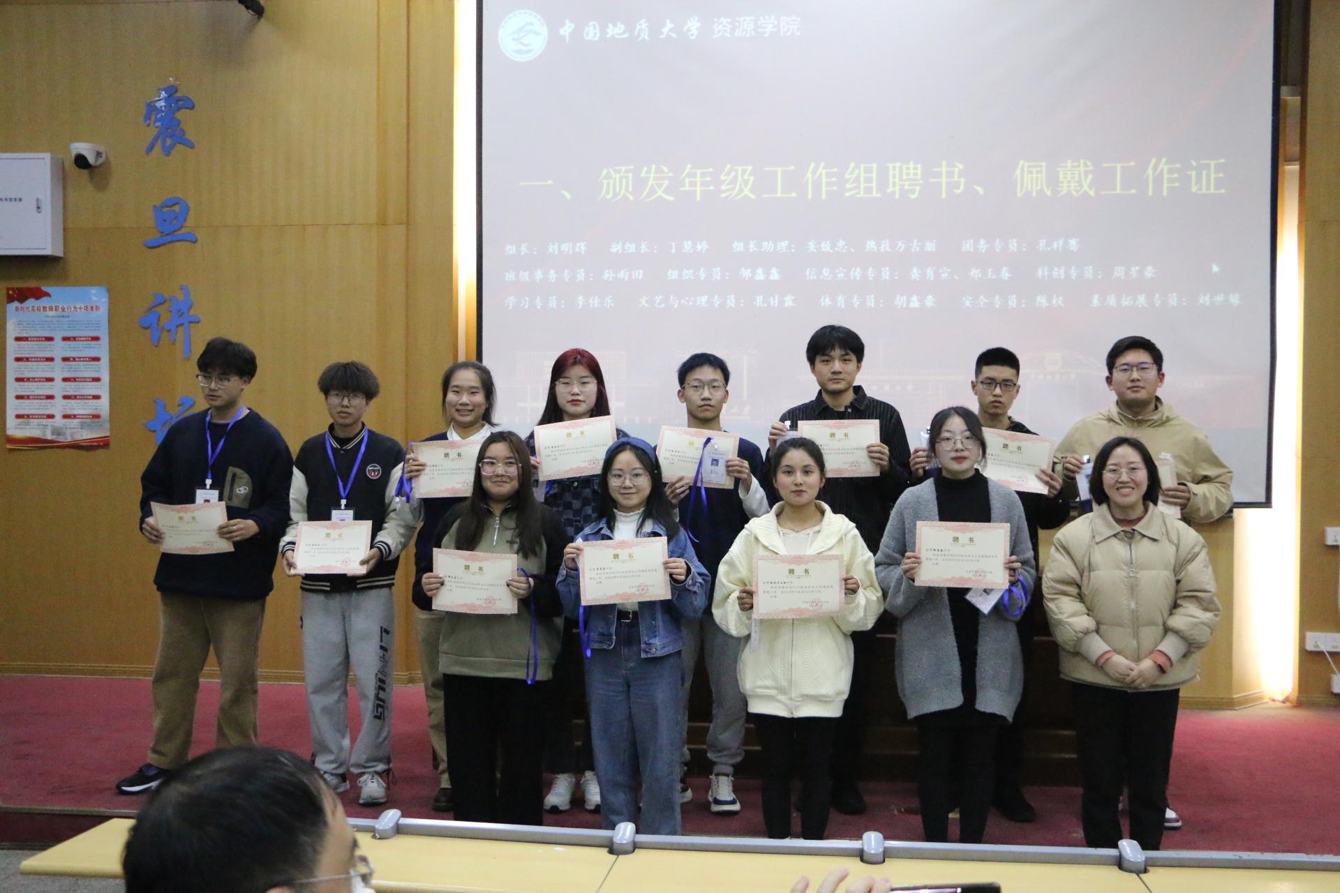 仪式结束后,布置了本学期重点工作。科创专员周星豪介绍科创活动,他回顾了“我把地大带回家”活动的开展情况,推荐了本学期以及大学期间可以参与的科创活动,鼓励同学们在参与科创赛事中培养学习习惯、提升专业技能、拓展综合素质。