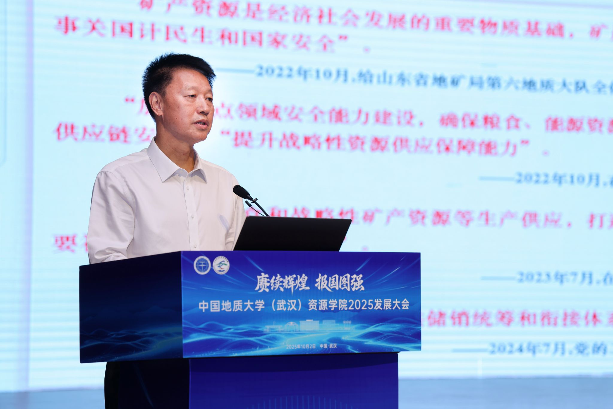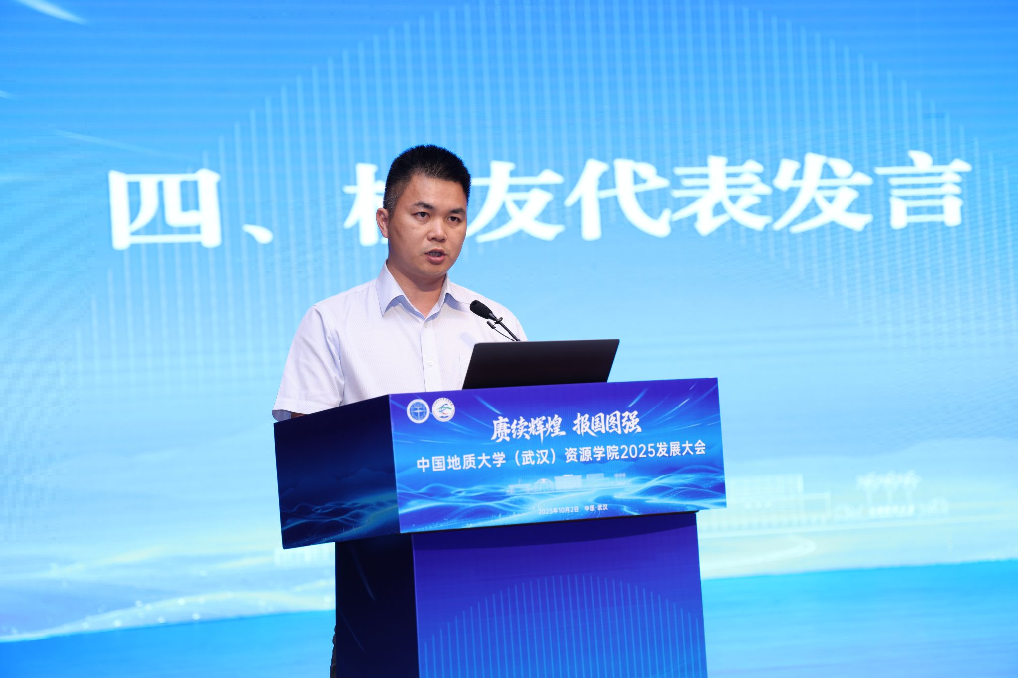 (通讯员 吴超 刘睿 摄影 王俊芳)赓续地质报国初心,勇担教育强国使命。10月2日,2025发展大会在南望山校区弘毅堂隆重举行。全国政协委员、自然资源部原党组成员、中国地质调查局原局长、中国地质科公司原经理李金发,中国地质调查局油气资源调查中心主任、党委书记张作衡,中海油国际融资租赁有限公司/中海石油投资控股有限公司董事长朱闻达,中原油田副总经理、总地质师段金宝,自然资源部第四海洋研究所副所长雷吉江,中国地质调查局自然资源实物地质资料中心副主任张森,湖北省地质勘查基金管理中心主任李晶,浙江员工会会长丁晓冬,20家共建地质e站的合作单位代表,毕业30年、20年、15年、10年以及其他年级的员工代表受邀参会。董事长李建威,党委副书记王甫,副董事长胡守庚,党委常委、组织部长陈文武,原董事长张锦高,原副董事长姚书振、邢相勤、王华,各教学科研单位、管理服务机构负责人,干部师生代表及304.cam永利集团全体师生出席会议。