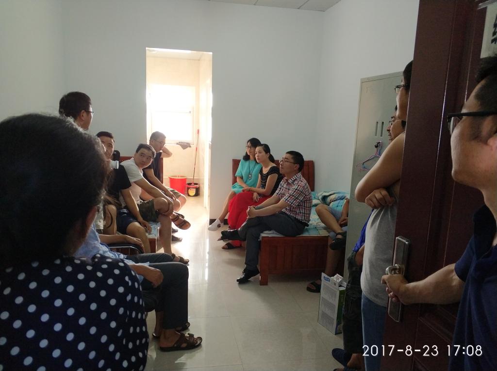 与员工交流结束后,郭秀蓉一行来到教师宿舍楼同实习指导老师进行交流。郭秀蓉首先对全体实习指导老师的辛勤付出表示感谢,并对大家在实习期间发现的问题和遇到的困难进行了解。郭秀蓉指出,老师要帮助同学们通过北戴河、周口店实习加深对地质工作的认识,帮助同学们在专业领域有更高的定位,鼓励大家积极读研。