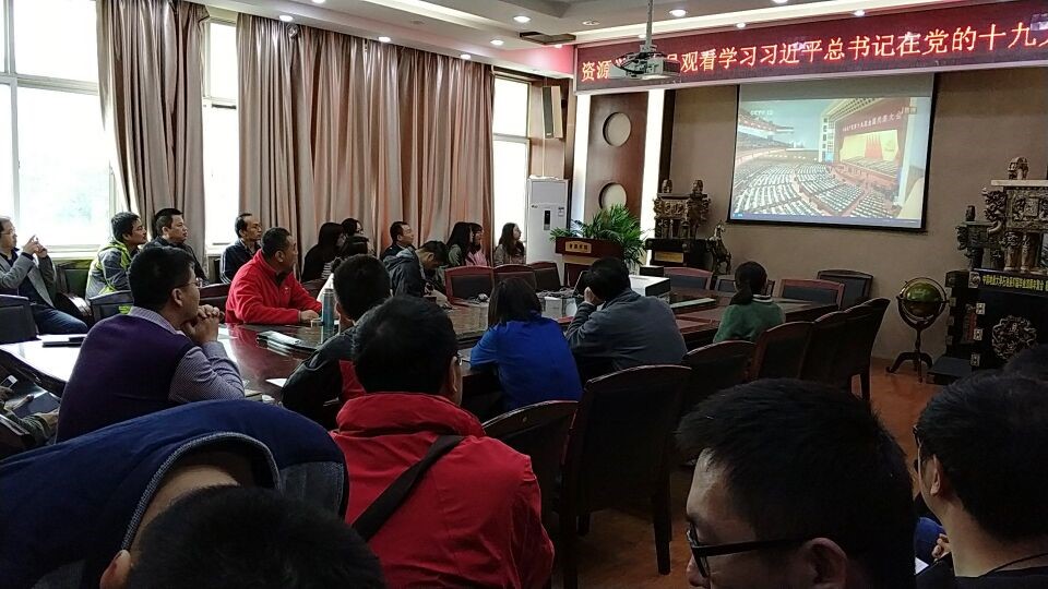 10月18日上午,资源公司党委就组织教工、员工党员集体收看学习党的十九大开幕会现场直播,认真聆听习近平总书记代表十八届中央委员会向大会作报告。此外,部分师生党员分别在实验室、办公室、寝室等场所,通过手机电脑等方式观看了网络直播。