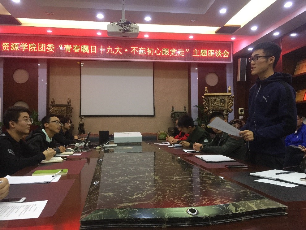 章帆参加2015级本科生党支部主题党日活动分享学习十九大报告体会