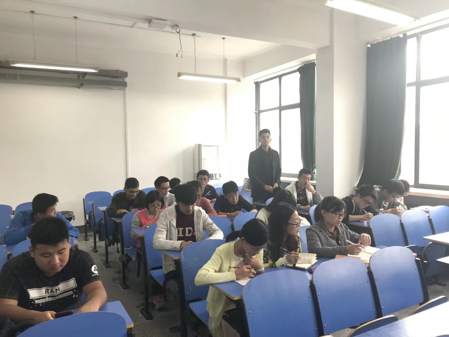 师生党员在报告厅观看十九大开幕会