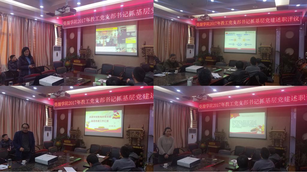 会议中,各支部书记结合PPT,围绕履行党建责任情况、党建工作进展情况及成效、思想政治工作情况及存在问题和加强改进工作的思路和措施等方向汇报了2017年抓基层党建工作情况。