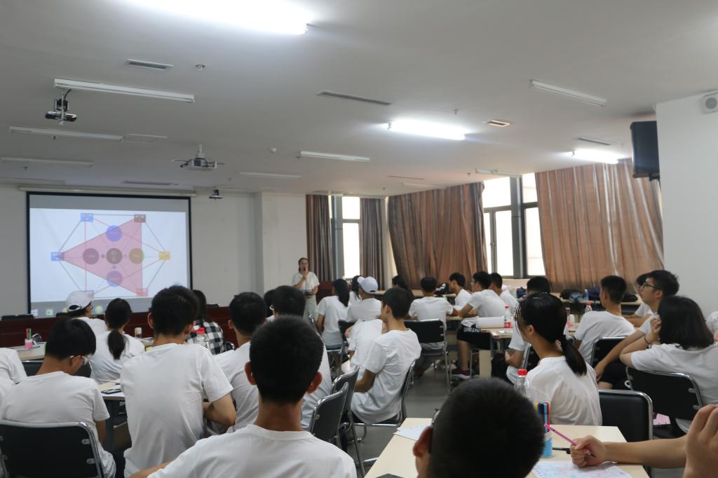 7月10日上午8:30,“走进老员工活之兴趣探索”在图书馆10楼报告厅正式开始。304.cam永利集团团委副书记刘明辉老师以破冰游戏小鸭操开始了上午的活动。随后营员们分成6组开展兴趣探索,营员们选岛、登岛、换岛、设计并展示旅游方案,刘明辉老师分别讲解了六种兴趣类型的基本特征、适合学习的专业、适合从事的工作,自我探索的四个维度以及与专业选择的关系。活动现场气氛轻松而愉快。