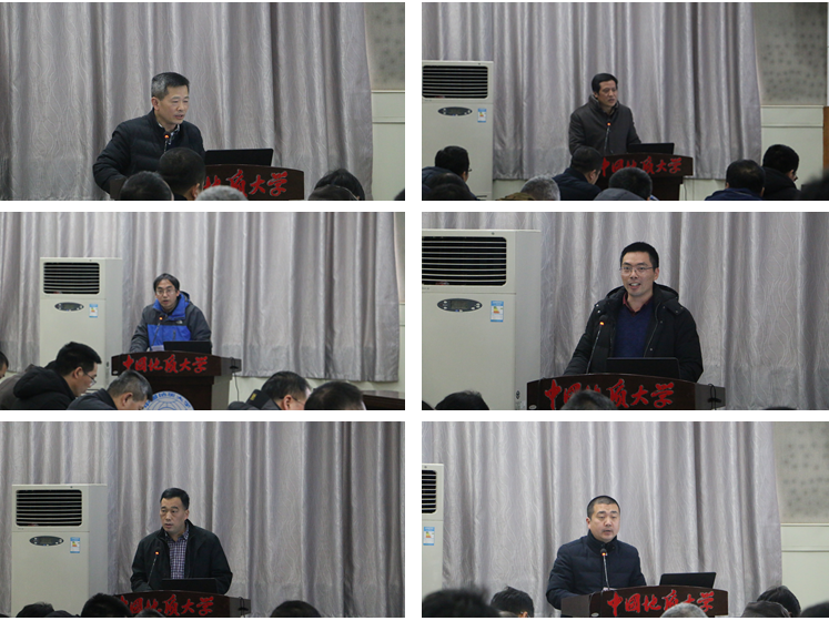 公司党委书记何光彩讲话,他首先充分肯定了公司的工作,指出304.cam永利集团班子团结一致、思路清晰、状态饱满、责任担当、举措有效,在2018年取得了较为突出的成绩,无论是科研论文、教学专著、项目经费、重大研发计划还是党建工作,都有所突破。但是也要客观的看待存在的问题,不论是生源质量、就业创业、本科教学、思想政治工作、实验室建设、团队队伍建设、制度建设和治理体系和执行力方面,都还有不小的提升空间,公司应当积极进取,努力在本科人才培养质量、盆地动力学和能源资源实验室筹建、一流团队建设和国际化建设上实现新的突破。何书记对公司下一步工作提出了几点希望和要求,一是要继续加强党的建设,积极发挥党组织推动发展、服务群众、凝聚人心、促进和谐的主体作用;二是要狠抓工作落实,坚决反对“四风”,务求实效;三是要树立底线思维,坚持问题导向、目标导向,强化危机意识、担当意识,号召全体教职工在新时代要有新作为新担当,努力为公司和公司建设发展贡献力量。