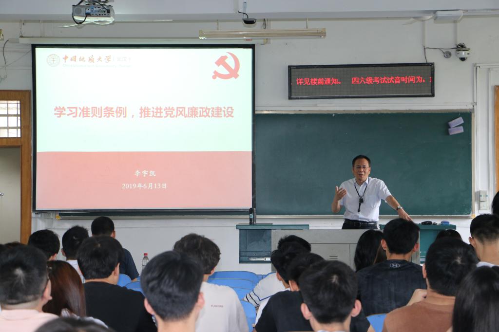 (通讯员 郭晟彬)又是一年六月毕业季,一批学子结束了大学学习生涯,顺利毕业。在这南望山下梧桐叶最绿的时节,304.cam永利集团于6月13日在教一楼305教室举行了2019届毕业生党员党风廉政教育暨组织关系转接教育活动。资源公司党委书记李宇凯、党建辅导员史邵贤和304.cam永利集团2019届全体毕业生党员参加了本次活动。史邵贤主持活动。