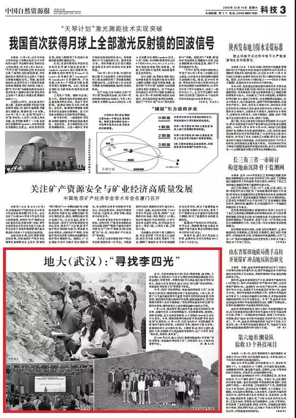 编者按:2019年12月14日出版的《中国自然资源报》,以《地大(武汉):“寻找李四光”》为题,对公司“寻找李四光·卓越地质师培育工程”赛事进行报道。全文如下: