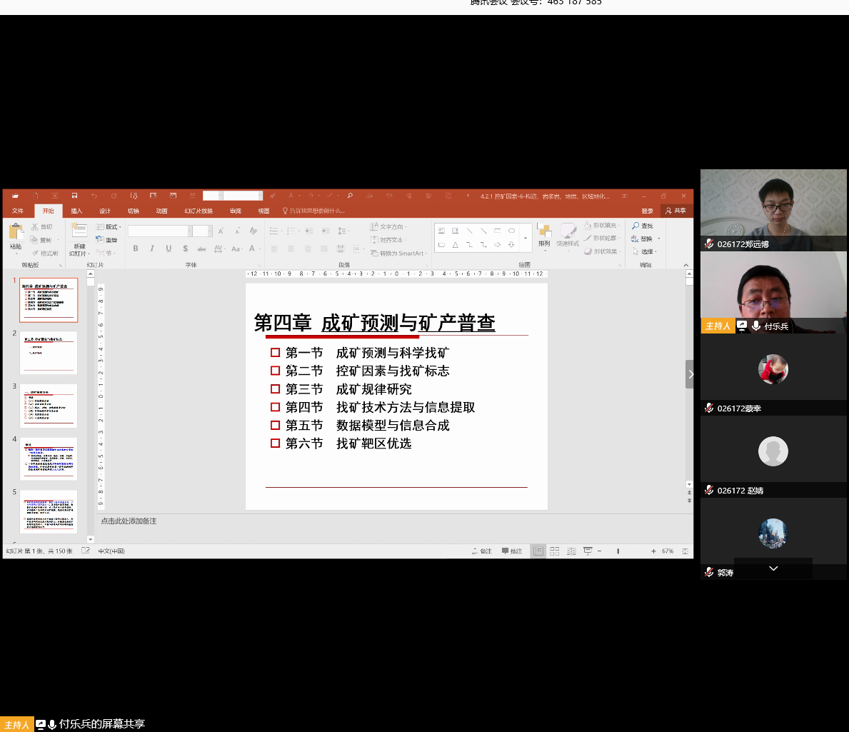 本学期4月份,《矿产勘查理论与方法》还将有李四光公司、地公司、海洋公司6个班的课程即将开课,即将开课的魏启荣、李艳军老师等老师也已经做好了课前的准备工作,将严格贯彻公司“停学不停课”的要求,有信心顺利完成疫情下的课程教学任务。同时,还将在学期末就本次课程的网络授课进行总结,查找不足和存在的问题,为建设丰富课程网络教学资源和提高网络直播教学质量迈出更为坚实的一步。