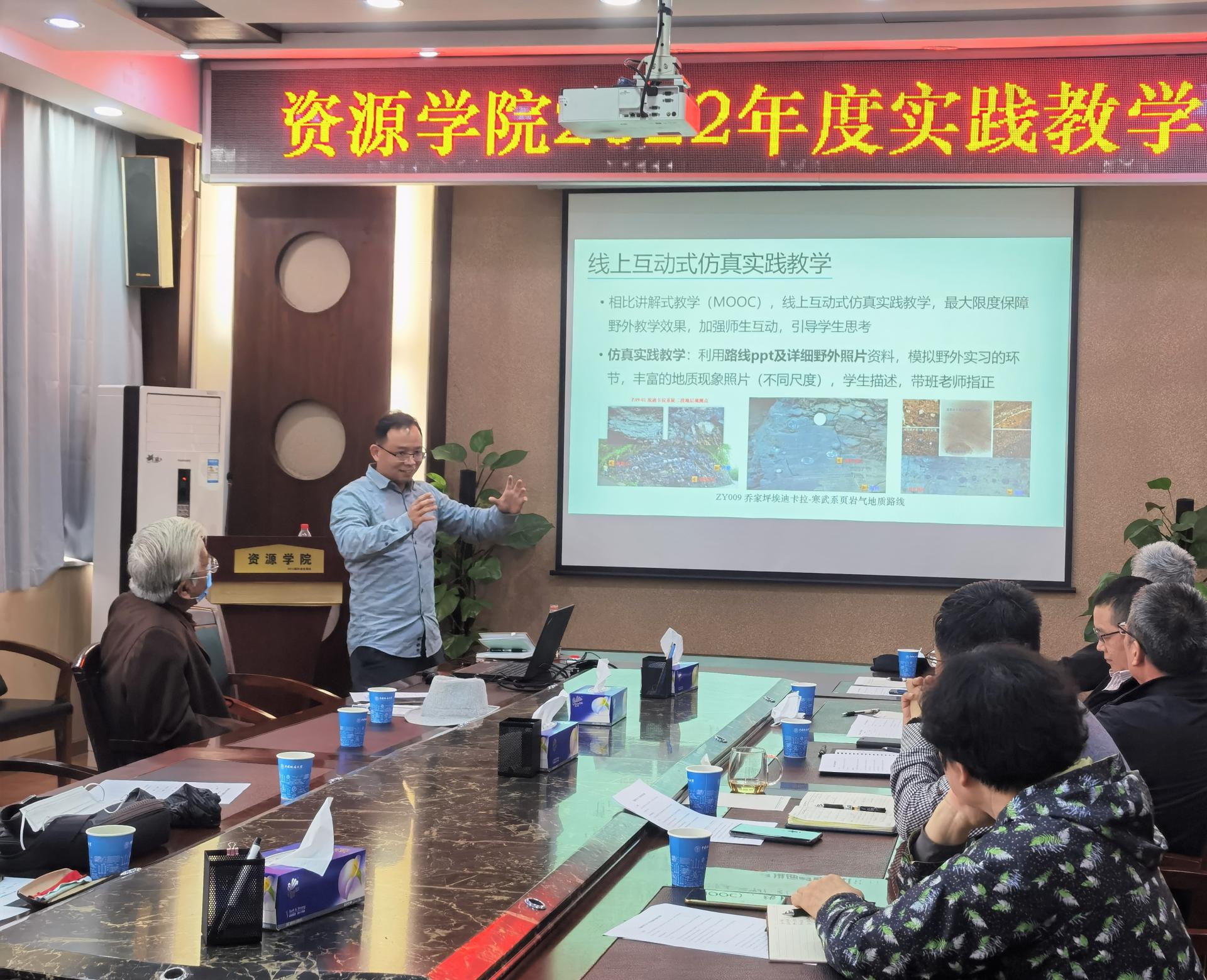 董田、魏启荣、李嘉光、杨振、顾军和陈振林等6位实习基地教学团队负责人汇报了2021年度实践教学基本情况及取得的建设成果和亮点,也对2022年实践教学安排进行了规划。与会人员就各实习基地的实践教学实施、创新人才培养、教学模式创新、教学方法改进、实习教师队伍建设等方面进行了热烈的讨论,并提出了建设性意见,指出:基地的实践教学不仅要培养员工的基本地质技能,更要增强员工对地质工作的认识和热爱,要从“专业化、兴趣化、趣味化、社会化”等方面对员工进行引导和培养;实习过程中既要学习现场观测、绘图、记录等获取一手数据的基本技能,也应和高科技结合,引入现代化的技术手段,如数字填图、无人机、虚拟现实等新技术、新设备支持实践教学工作,不断提高员工服务现代化地质工作的能力;实践教学团队也应持续加强教学路线、实习教材、虚拟仿真课程等教学资源建设。讨论结束后,与会人员对实践教学团队2021年的工作进行了测评。