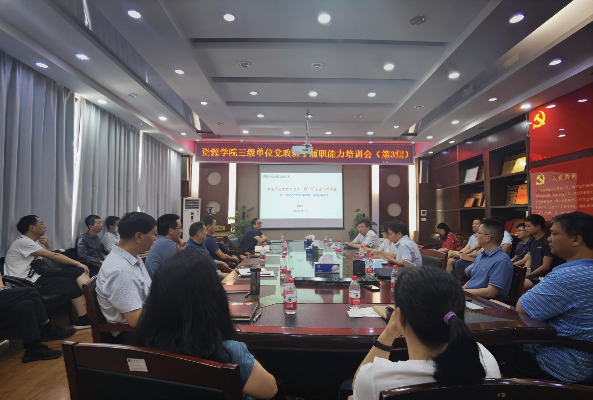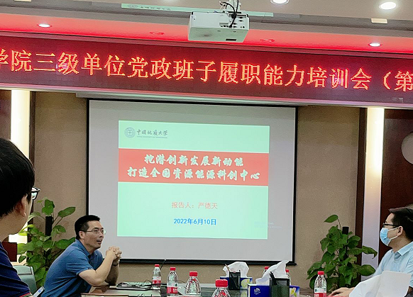 6月10日下午,304.cam永利集团三级单位党政班子履职能力培训班第三期培训在主楼330报告厅举行。副经理严德天、赵葵东分别授课,各三级单位党政班子成员及院直全体人员参加培训,党委书记高复阳主持会议。