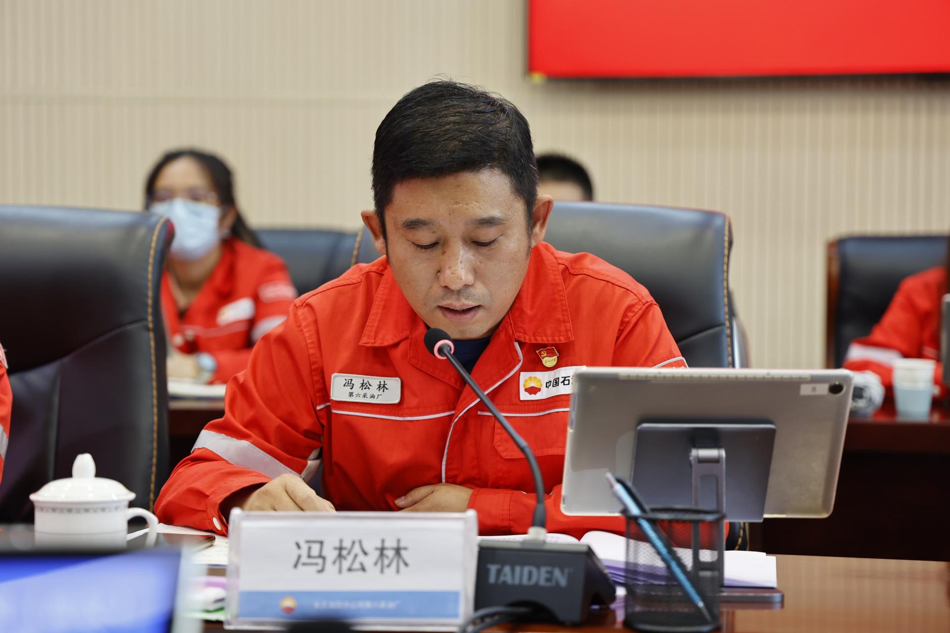 会上,采油六厂党委宣传部副部长、团委副书记(挂职)、公司石油工程专业2020届毕业生王军讲授《为有牺牲多壮志、敢教日月换新天——从毛主席诗词中汲取高质量发展的不竭动力》专题党课。他从《沁园春·长沙》《七律·长征》《浣溪沙·和柳亚子先生》《念奴娇·鸟儿问答》等诗词带领大家重温了波澜壮阔的伟大历史。他讲到,在这些伟大精神的激励下,长庆油田建成了国内第一大油气田,累计为国家贡献油气超过7亿吨,有力助推了国家生态文明建设和经济社会发展。他说到,迈向新时代,七万长庆人将牢记习近平总书记殷切嘱托,不断奋进高质量发展,以“风景这边独好”的发展前景,迎接党的二十大胜利召开。
