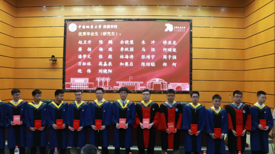 导师代表、“最受员工欢迎老师”获得者李占轲老师寄语全体毕业生,愿大家的内心像石英一样纯净,希望大家能够“不忘地质初心,牢记资源使命”,为祖国的地矿事业贡献力量;愿大家的品质像金子一样闪亮,无论经历炙热的岩浆热液,或是冰冷的河流冰川,纵使满身擦痕、依然金光闪闪;愿大家的价值像石油一样重要,像“工业的血液”石油那样,在高速行驶的汽车里、在撒向良田的化肥中,在祖国需要的各个角落充分发光发热,实现自己的人生价值;愿大家像磁铁矿一样,无论大家身处何处,也要同母校、同学保持联系。