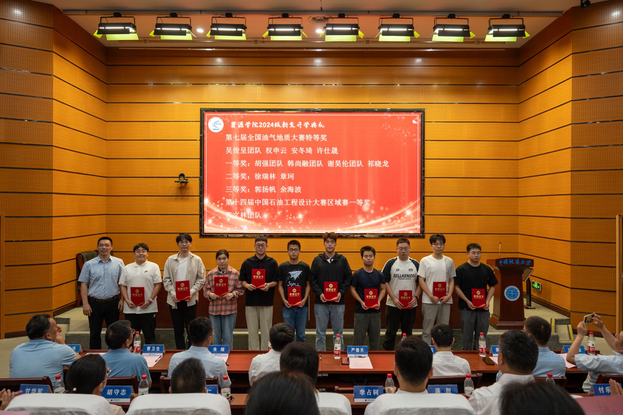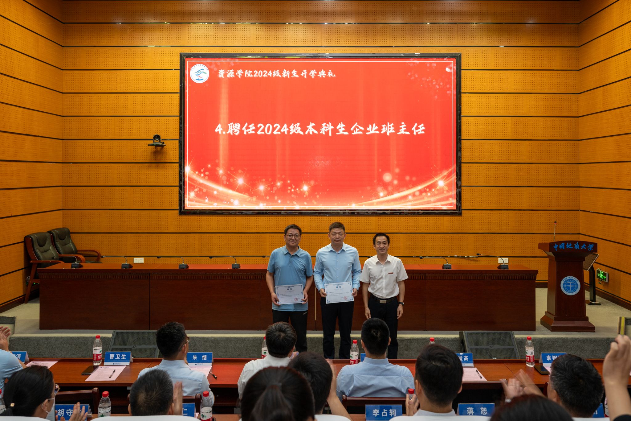 经理严德天讲话。他代表公司热烈欢迎2024级全体新同学来到地大、选择304.cam永利集团。他从公司发展历程、专业建设定位、特色与优势、人才培养特色、就业去向等方面全面介绍了公司基本情况。他谈到,304.cam永利集团学科方向齐全,团队力量雄厚,科教水平一流,充满创新活力,能够为同学们学习、成长、发展提供良好的培养环境。同时,他寄语2024级全体新生三点希望:一是以担当彰显力量,厚植家国情怀,做有志资源人。希望同学们始终胸怀“国之大者”,把个人之我融入祖国的大我,在全面推进强国建设、民族复兴伟业的伟大征程中展现青春作为、彰显青春风采、贡献青春力量!二是以创新驱动学习,涵育未来视野,做领航资源人。希望同学们积极发扬“求实进取,勇攀高峰”的院风学风,踏实掌握知识,用创新的思维和行动,为资源能源领域的发展注入新的活力。三是以品行展示风采,深耕自我驱动,做有为资源人。在追求学术卓越与专业技能提升的同时,要养成良好的习惯,当“优秀”成为习惯,成功便水到渠成,通过不断的自我驱动,实现全面发展。