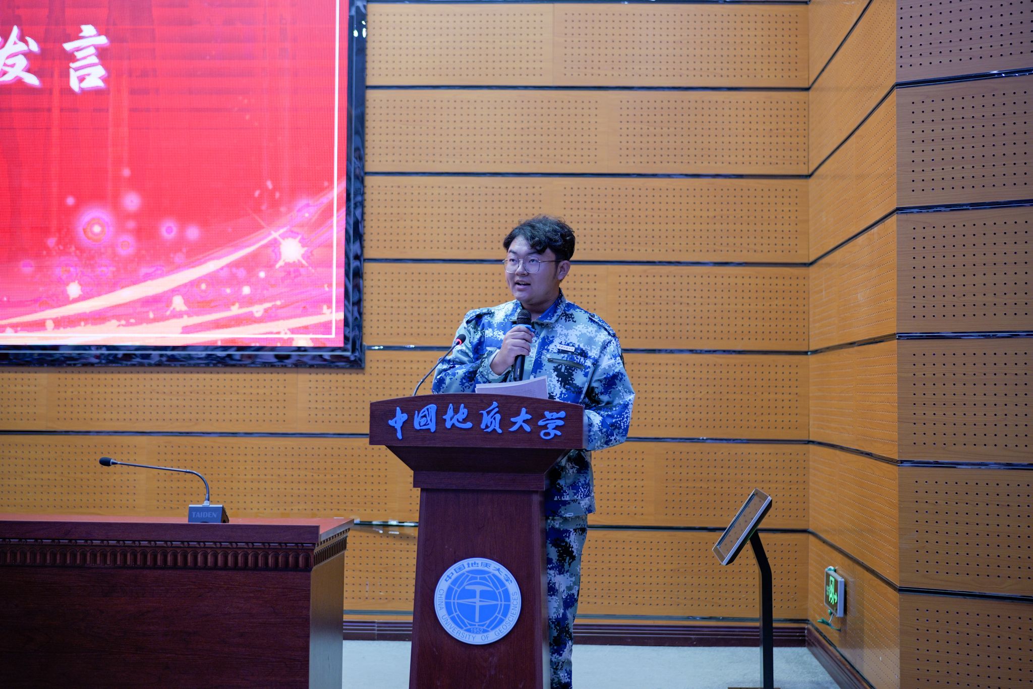 本科生新生代表、石油工程专业薛家铭跟同学们分享了他与地质工作的结缘以及对地大304.cam永利集团的热爱。他谈到,来到304.cam永利集团,是爱我所爱的青春奔赴,更是一场实现梦想的青春起航!他号召,所有新生同学们,去学习、去实践、去科研、去成长,在公司的托举下、在老师们培养下、在祖国的大好河山中,去领略地质奥秘,锤炼报国本领,叩开科学殿堂,拥抱资源、拥抱祖国、拥抱时代。