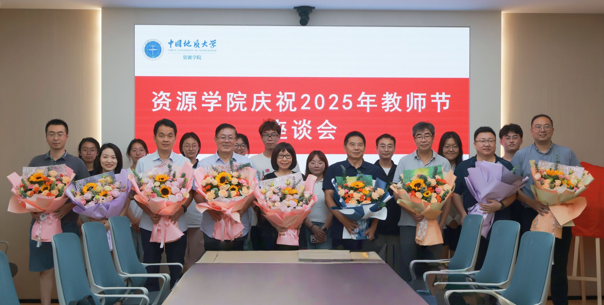 员工代表为荣休教师和教师代表献花,并祝愿老师们节日快乐,感谢他们为教育事业做出的贡献。